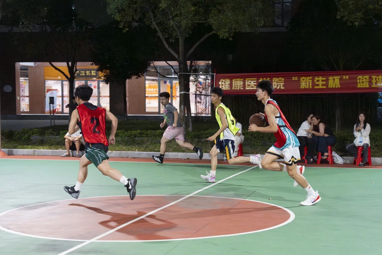健康医学院2025年“新生杯”篮球赛在10月11日18:00,6号楼前篮球场正式拉开帷幕,开启了为期三天的激烈角逐。本次活动由健康医学院(江门校区)学生会文体部主办,旨在丰富新生课余生活,打造以球会友的青春舞台,推动体育育人融入学院文化建设。