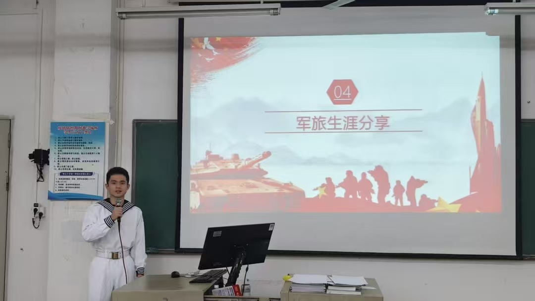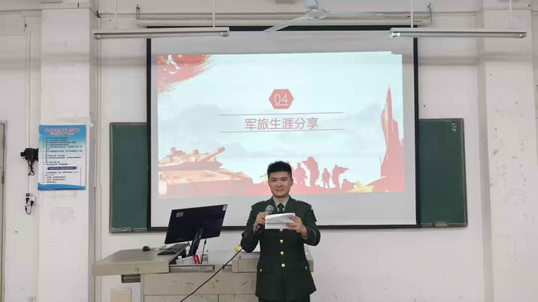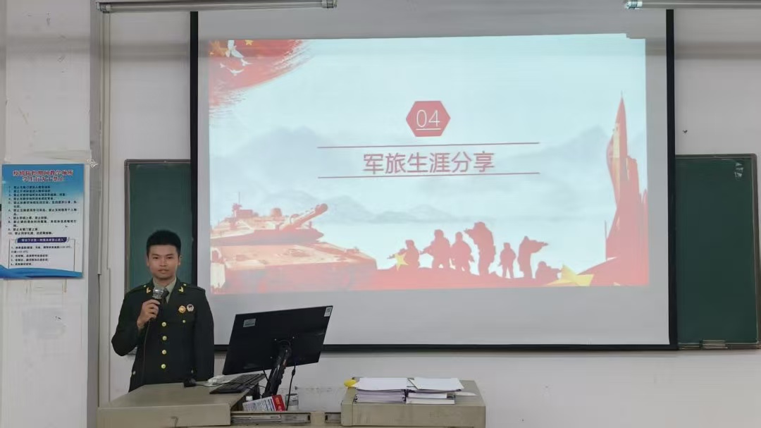 宣讲员何星宇通过分享与战友日常训练和参加培训的故事,并号召同学们响应征兵号召,投身军旅,收获宝贵战友情,践行爱国志。