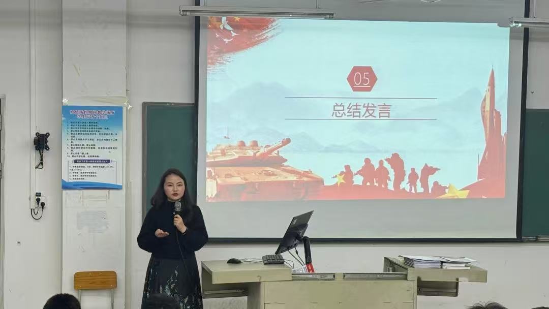 活动最后,健康医学院国防宣讲团指导老师杨敏娟对此次活动进行了总结发言,强调入伍是有价值的人生选择,她鼓励同学们在学习中追求进步,在生活中积极进取,立足本身,投身军营,奉献青春,为国家和人民作出贡献。