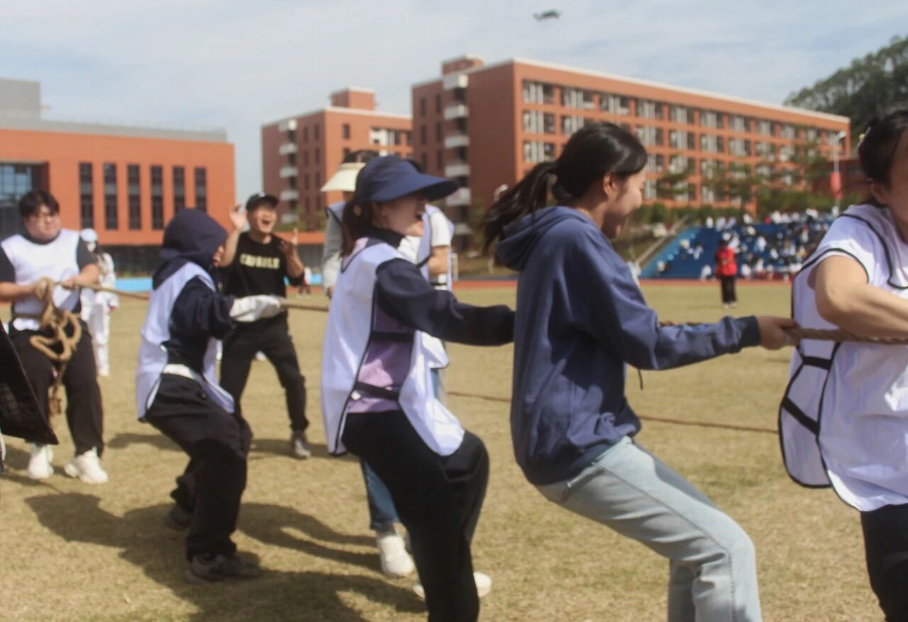 拔河赛场上,两队老师紧握绳索,脚蹬地、身后倾,脸涨得通红。学生们呐喊助威声震天,欢乐的氛围满溢比赛全场。在“超级汉诺塔”现场,老师们默契配合,每一次交接,都凝聚着团队的信任与协作;每一次套圈,都赢得了现场观众的阵阵喝彩。
