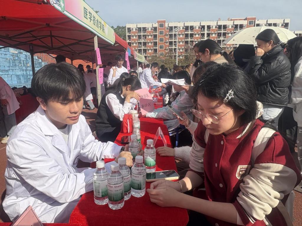 冬日暖阳轻洒东操。11月28日,我校举办了“扬帆起航,职达未来”阳光就业2026届毕业生校园双选会。医学技术学院积极组织、精心布展,由医心健康服务队联合软组织康复技术培训班共同打造特色展位,全面展现学院深化产教融合、强化实践育人的教育成果。