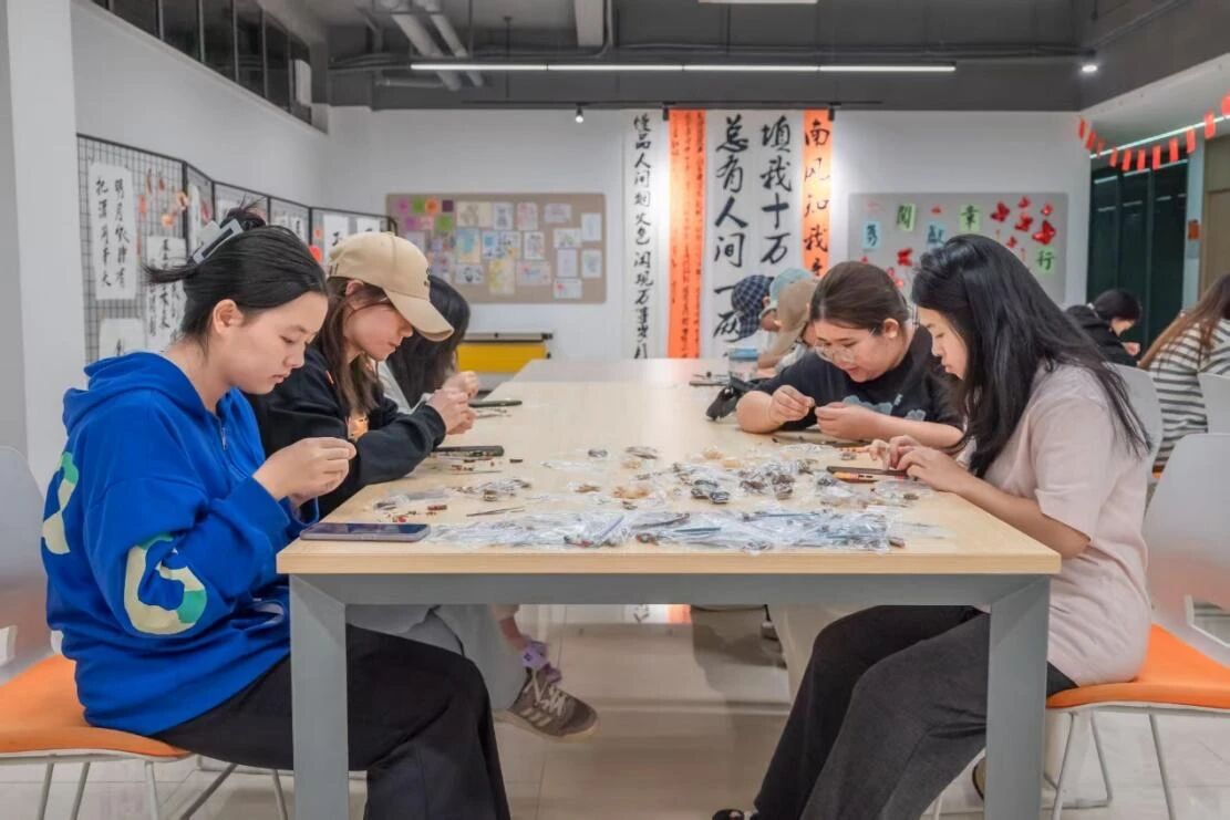 了解之后便是创造。活动进入了最令人期待的手作环节。同学们充分发挥奇思妙想,将原本只存在于药柜中的草本素材,同学们巧妙地融入饰品创作。巧妙组合各类药材,制作成别具一格的植物标本挂饰。现场气氛热烈,欢声笑语不断,指尖翻飞间,一件件独一无二、充满个性与祝福的中药饰品逐渐成型。