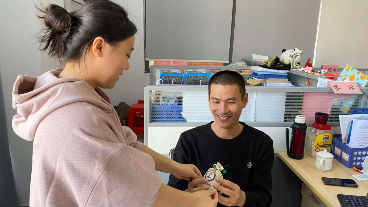 活动临近尾声,部分同学将亲手制作的防蚊香囊赠予老师。这份礼物既实用,能帮助师长应对蚊虫侵扰;亦承载情意,寄托着学子真挚的感恩之心。小小香囊,将健康关怀与传统智慧相融,更把温暖的师生情谊蕴藏其中。此次实践活动不仅生动诠释了传统智慧在现代生活中的应用价值,也切实增强了同学们的自我防护意识与健康传播能力,实现了知识传承与情感教育的双向收获。