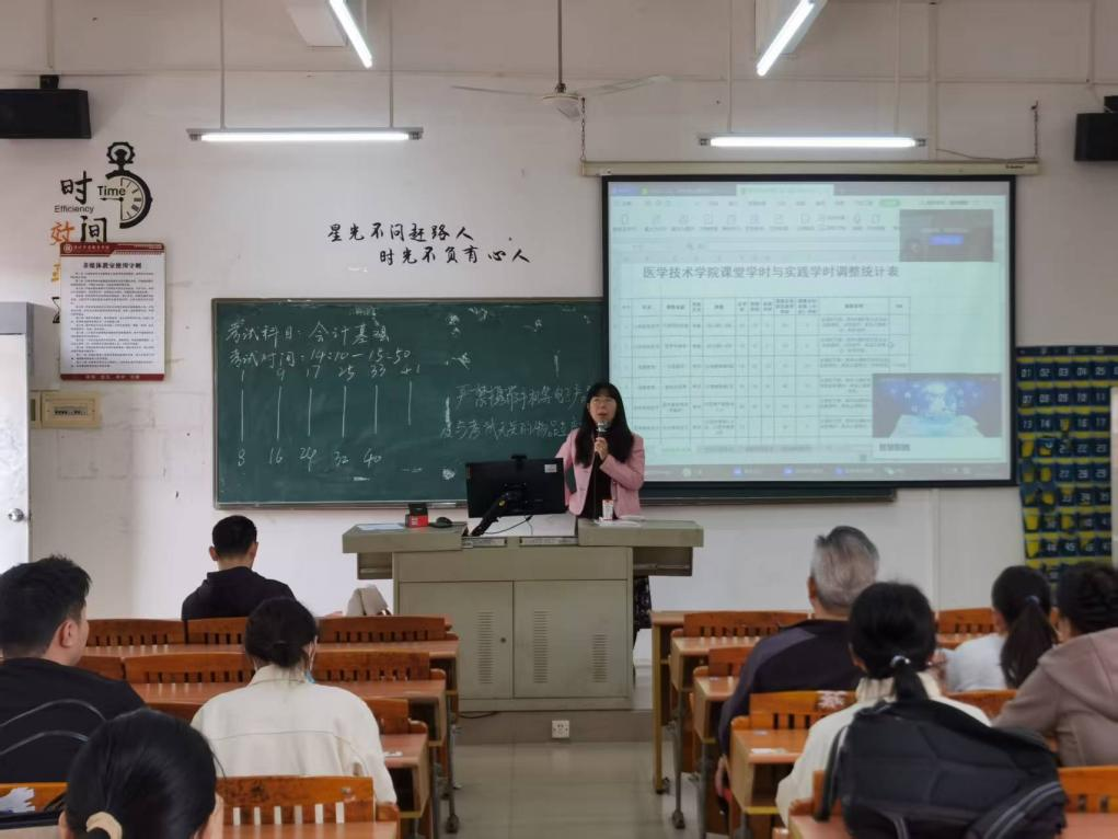 针对教师能力提升,洪文艳院长强调,教师必须与时俱进,主动适应教育教学发展趋势,加快提升教学能力、优化教学方法,以契合课程改革需求。若不能及时提升教学能力、适应教学改革要求,教师可能面临“缺课风险”,这既是对教师个人的鞭策,也是学院对教学质量负责的体现。同时她明确,学院新采购的一批教学设备将于下周进行验收,全体教师需主动熟悉新设备的操作规范,完成标准作业程序编制与教学视频录制工作,践行“先熟设备、再授理论”的教学思路,这是保障实践教学质量和效果的前提。