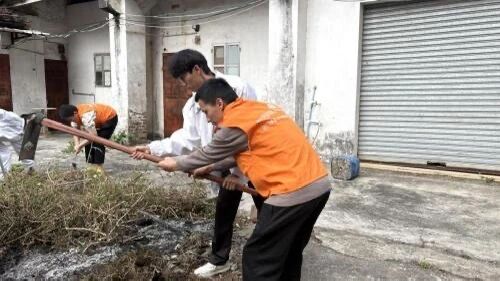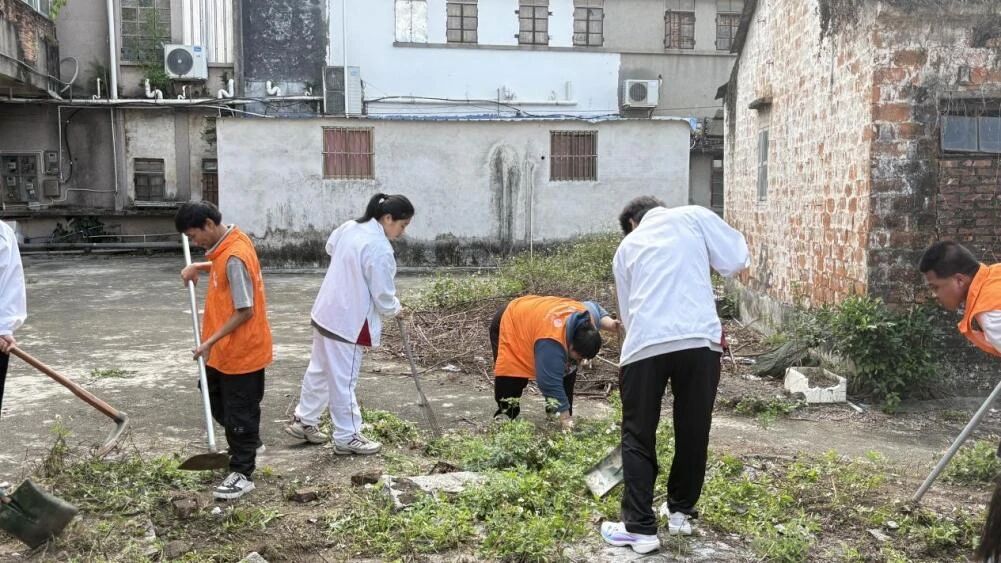 活动当天,志愿者们早早抵达崖门镇彩虹社区,根据现场环境特点,各小组分工协作,重点对公园的杂草堆、角落的杂草杂树等区域展开“地毯式”清理。志愿者们手持锄头、铁锹等清理工具,与彩虹社区的工作人员认真收拾各类杂草垃圾,清理卫生死角,整治环境乱象。经过数小时的辛勤劳动,公园面貌焕然一新,草坪整洁,为附近居民营造了干净、舒适、宜人的休闲空间。