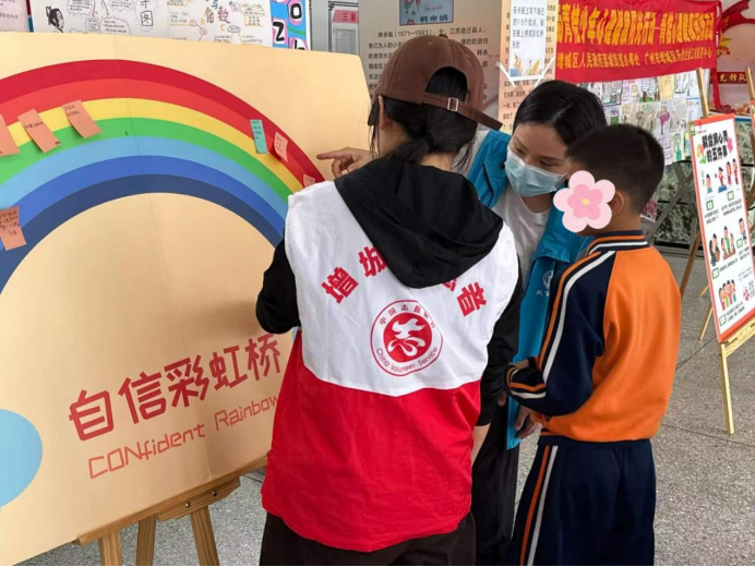 活动现场处处洋溢着轻松欢快的氛围,志愿者们精心筹备了丰富多样的互动环节,将知识传递与趣味体验融为一体,让孩子们在玩乐中收获成长、感受温暖。每一个活动摊位前都围满了热情参与的小朋友,大家踊跃互动、积极配合,欢声笑语回荡在校园的每个角落。
