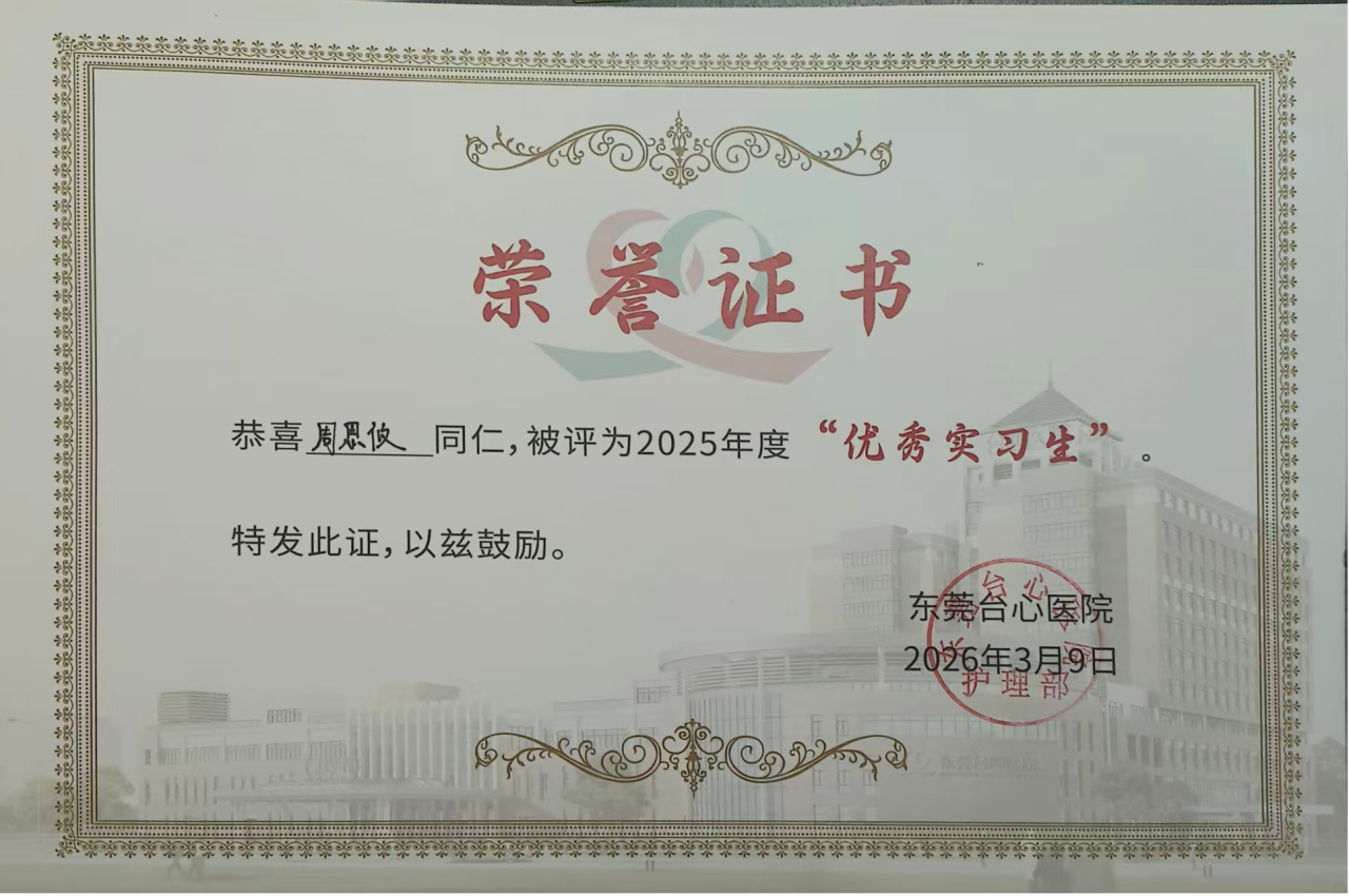在东莞台心医院实习期间,主要负责的核心工作内容,如基础护理操作、生命体征监测、术前准备、术后康复指导等等,协助带教老师完成日常诊疗辅助工作,参与科室交接班、病例讨论及应急演练,熟悉科室工作流程与医患沟通技巧,在实践中不断提升专业实操能力。