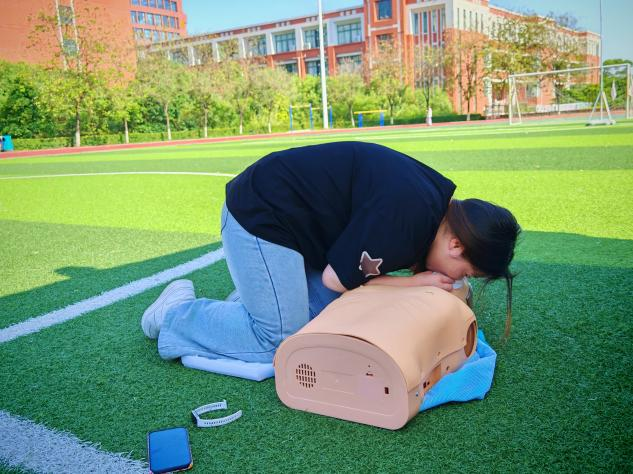 在体验环节中,同学们按照指导认真操作,互相观察并纠正错误,确保每个动作都符合标准。欢声笑语与专注神情交织在一起,形成了一幅动人的画面。通过这种互动式学习不仅增强记忆,还提高同学们在紧急情况下的应对能力。