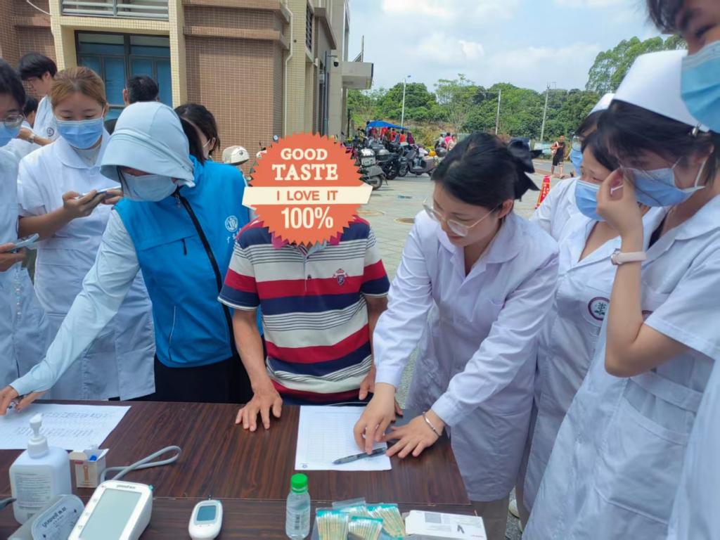 活动当天,在党员教师曾田的带领下,师生团队准时抵达合作社区,迅速完成场地布置,划分出健康体检、慢性病管理、急救宣教、人文关怀、中医护理五大服务区域,各项服务有序开展。