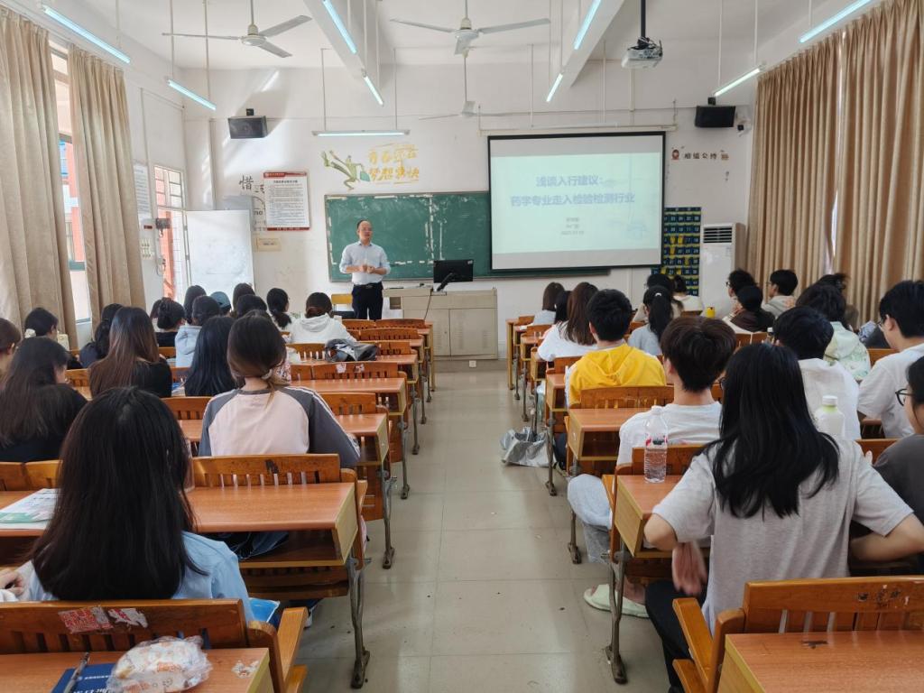 为拓宽学生就业路径,提升岗位关键技能,破解课堂教学与企业需求脱节的难题,2025年11月5日,我院特邀中国广州分析测试中心综合分析与逆向工程研究室主任罗辉泰,为23药...